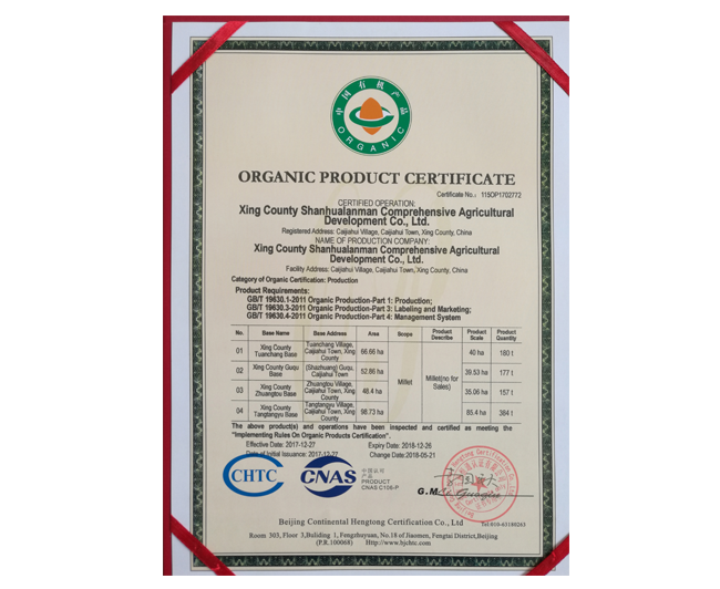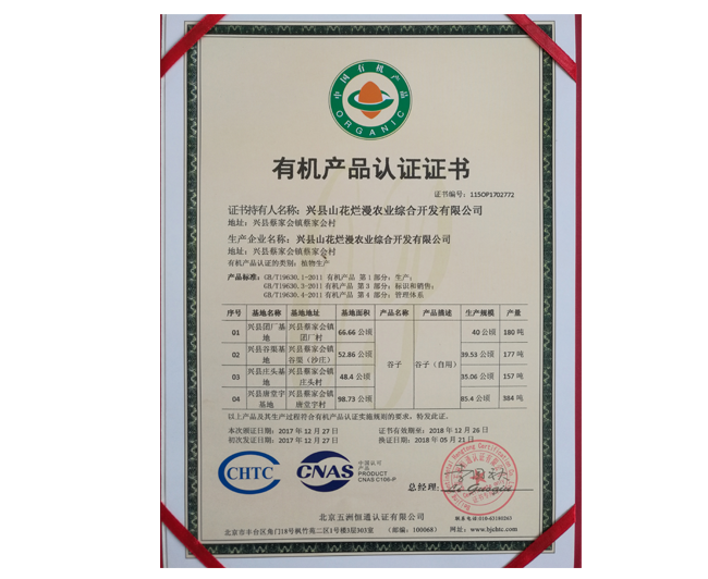 • 有機(jī)產(chǎn)品認(rèn)證證書(shū)
